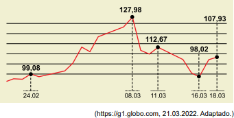Considerando a análise do gráfico e conhecimentos sobre o mercado internacional de combustíveis fósseis, verifica-se que o preço do petróleo apresenta: