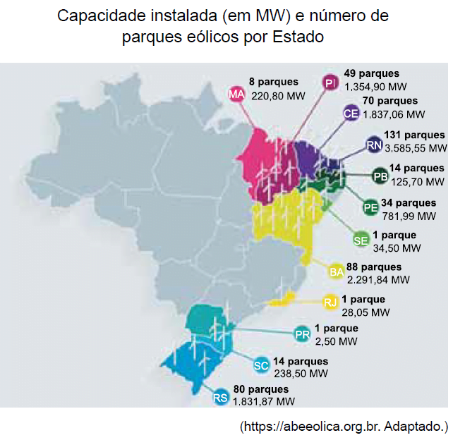 A região brasileira que lidera no mapa a produção de energia eólica e a explicação para essa liderança são, respectivamente: